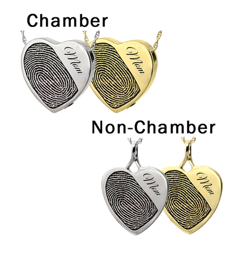 Personalized heart pendant featuring an authentic fingerprint impression on one side paired with a custom three-character name or monogram on the opposite half. Each piece preserves a unique biometric connection while maintaining elegant simplicity.